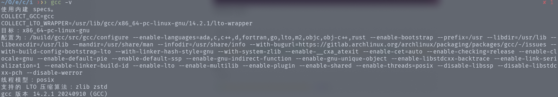而笔者的gcc版本: