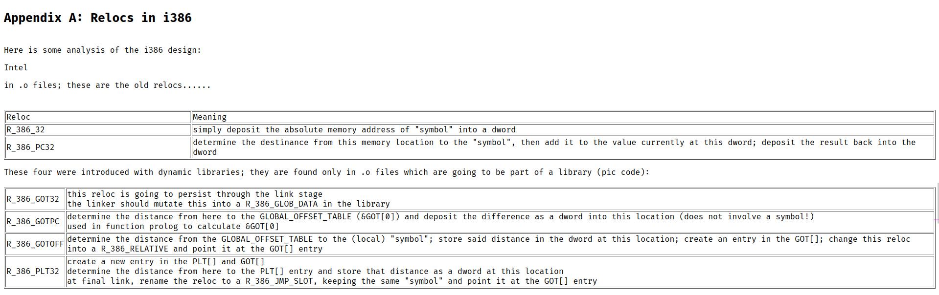 | 寻址字符串方式 | R_386_GOTPC R_386_GOTOFF | R_386_GOTPC R_386_GOTOFF | R_386_32 | R_386_32 | R_386_32 |