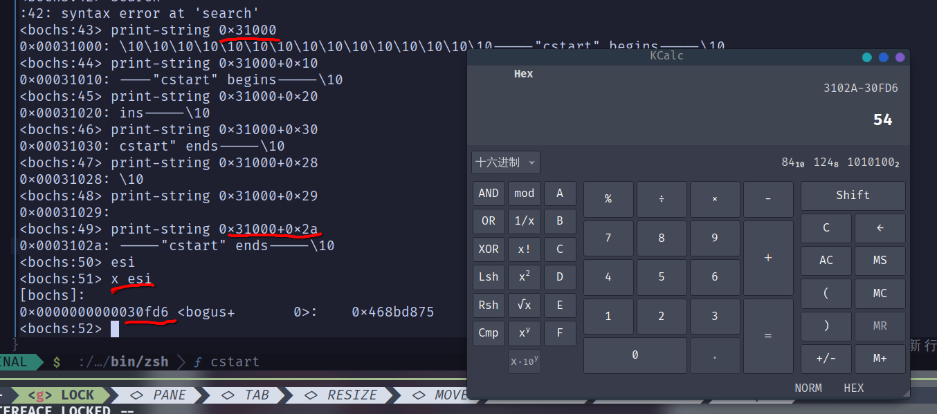 ebx的值变成了0x32fa0=0x32ff4-0x54,导致disp_str显示字符串的地址变成了0x30fd6=0x3102a-0x54。