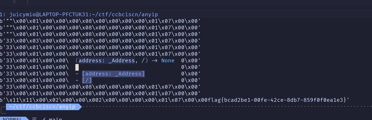 p2 = pack(0x1111, 2, b"a" * (0x4B - 9) + b"SomeIpfun" + b"b" * 0x100)