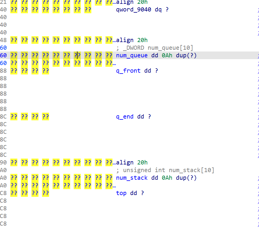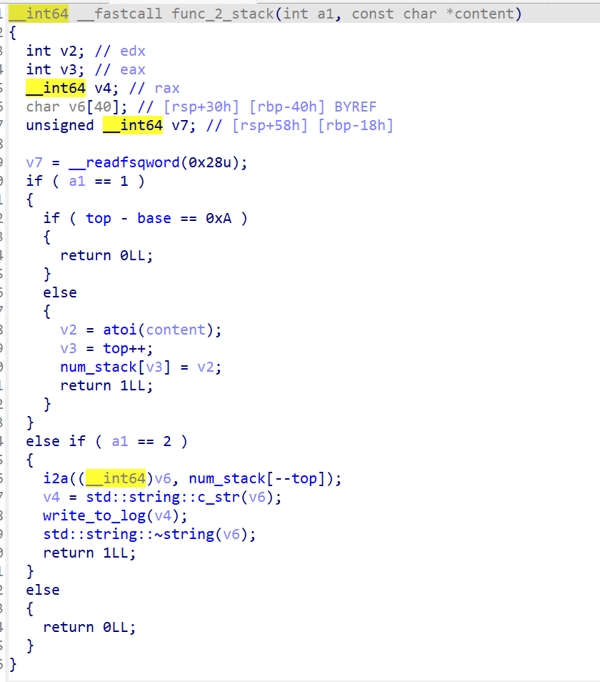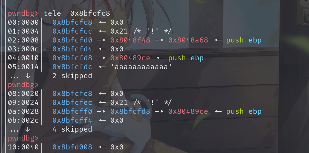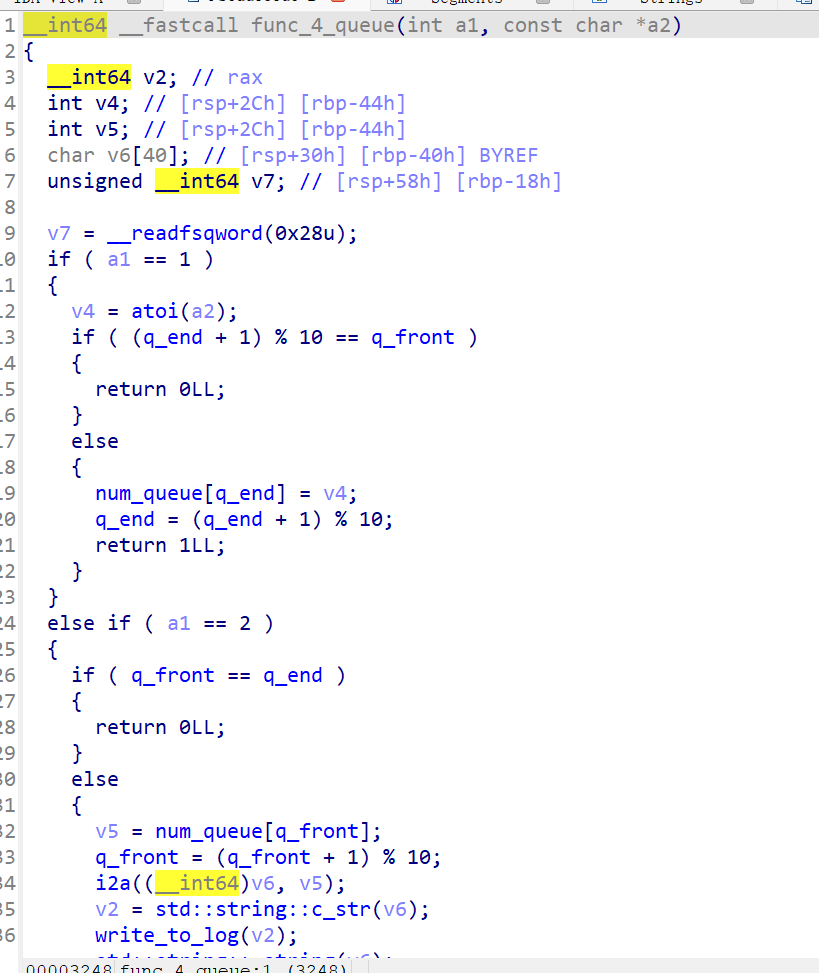 q_end = (q_end+1) %10是入队之后才会进行的,也就是说q_end被覆盖后的第一次入队,偏移完全由刚刚越界push的数字决定。但由于只有一次,不能完整覆盖s。但是发现栈对top的唯一检查就是top- base != 0xa, 所以只要把base覆盖掉,栈就可以任意偏移写了。